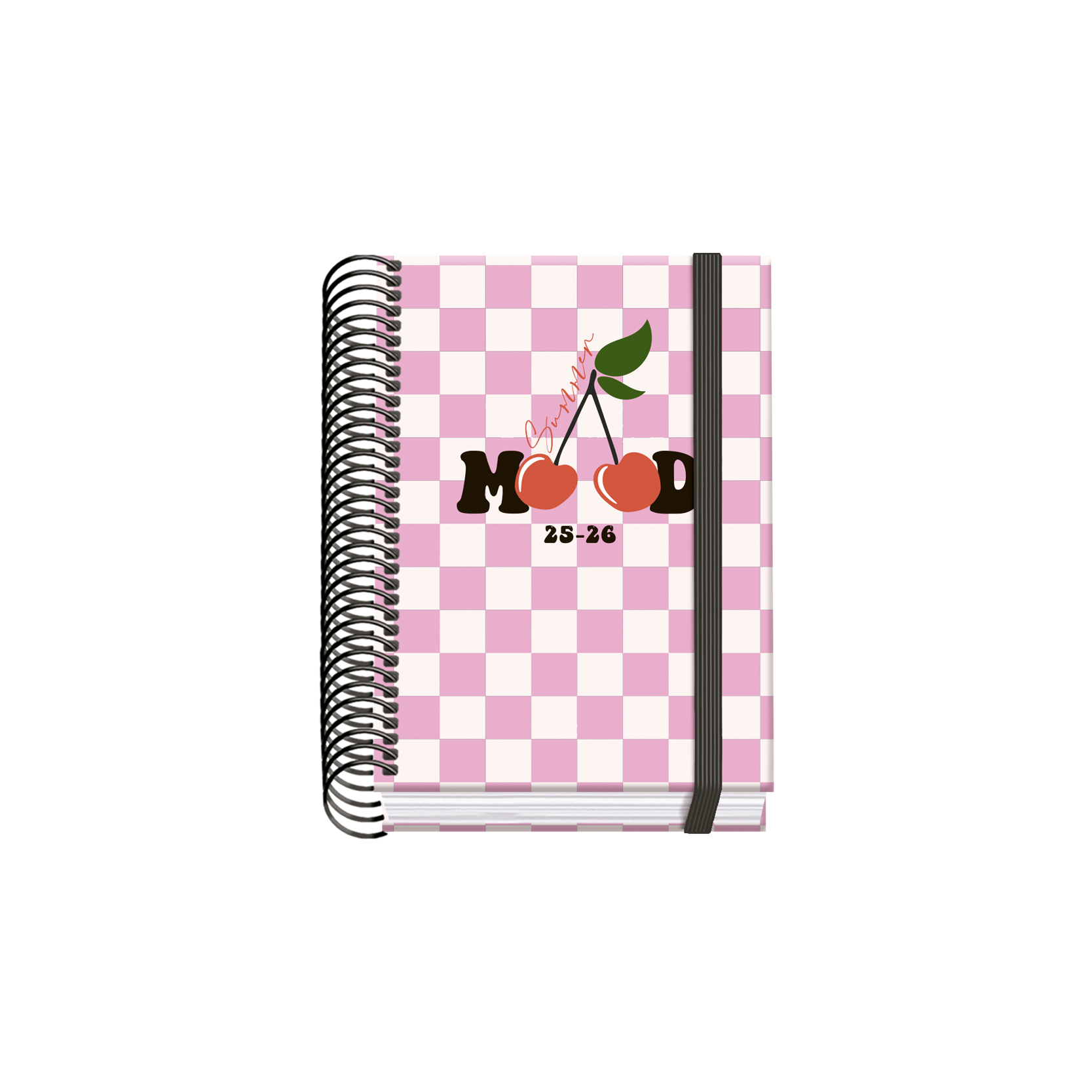 Agenda escolar 2025-2026 día página con cubierta en cartón forrado con papel impreso a todo color y plastificado. Guarda impresas. Encuadernada en espiral de plástico y cierre de goma elástica plana de color. Interior impresos en papel offset de 70 gramos y 4 hojas de pegatinas impreso a todo color. Con Certificado FSC Mixto.