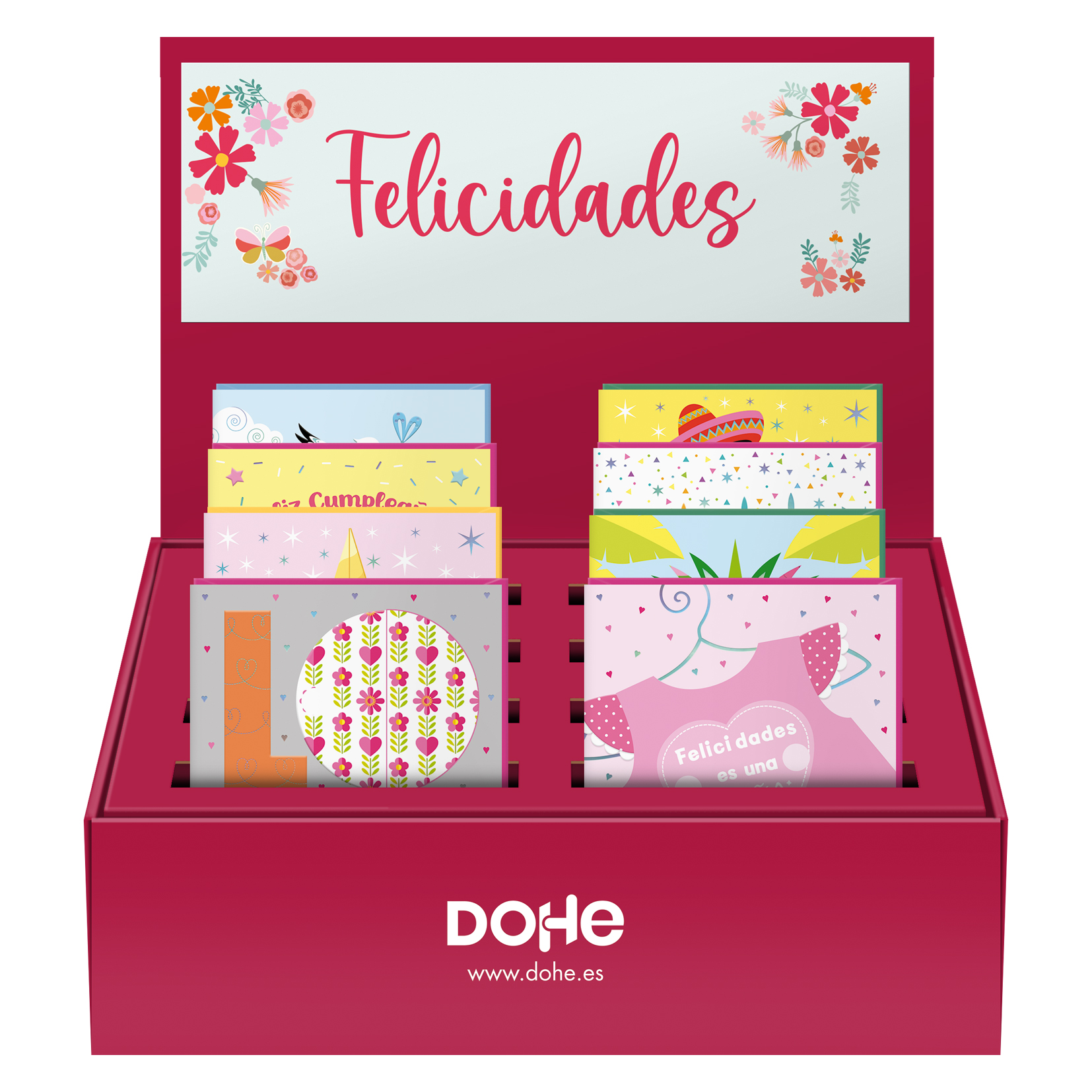 Dohe – Expositor de sobremesa para Tarjetas Guirnaldas – Tamaño 34 x 27,5 x 29 cm – Incluye 48 Tarjetas y Sobres