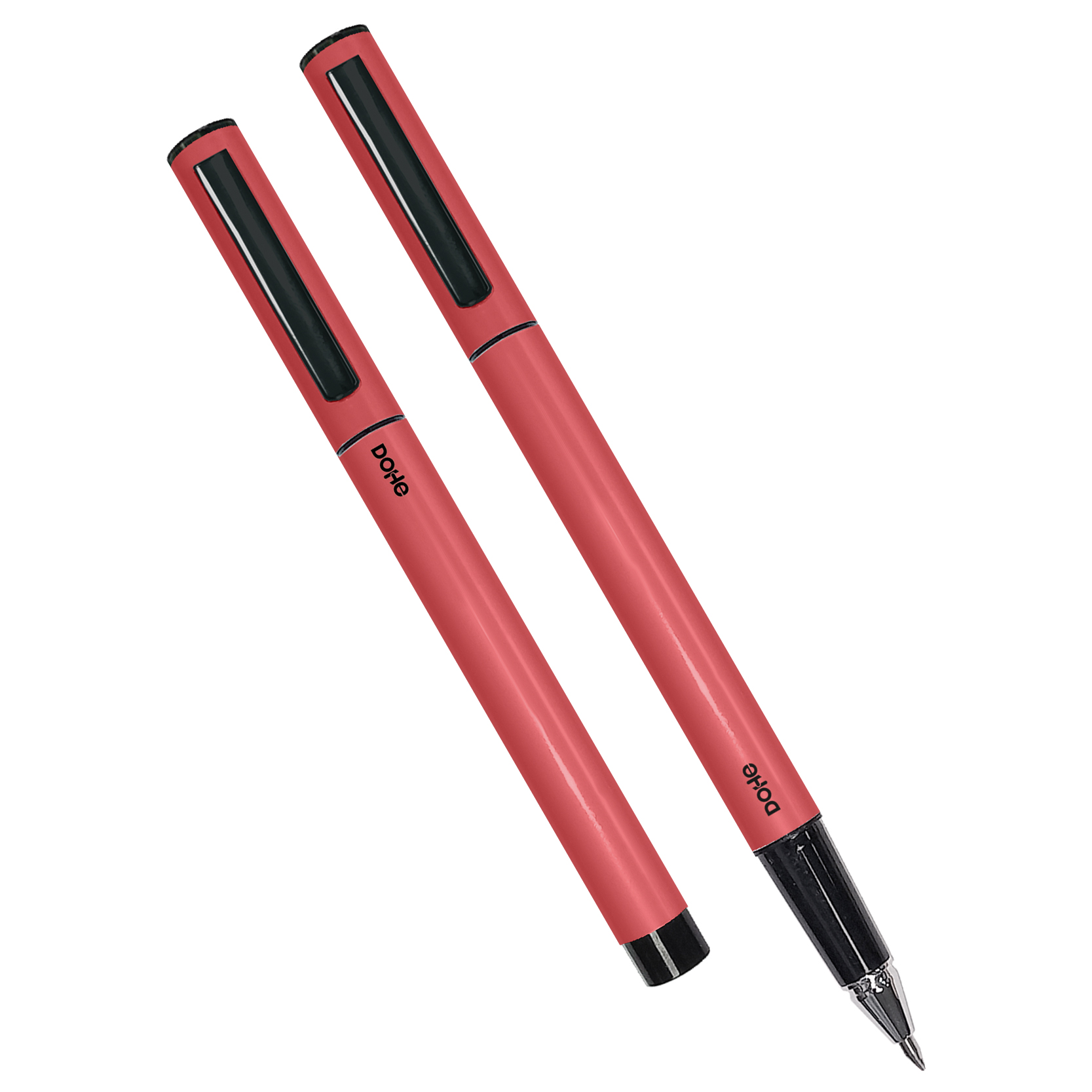 Dohe – Pack 4 Bolígrafos Elipse – Tinta de Gel Azul – Punta fina de 0,5 mm – Cuerpo metálico con capucha – Rojo