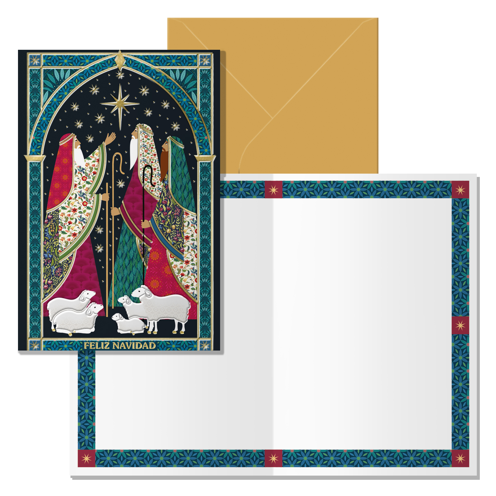 EAN: 8421938700176Tarjeta de felicitación navideña. Tamaño 11,5 x 17 cm cerradas (23 x 17 cm abiertas), impresas a todo color, con estampaciones con película de color y estampación en seco. Realizadas en papel offset blanco de 300 gr. Incluye sobre de color. Con certificado FSC Mixto.